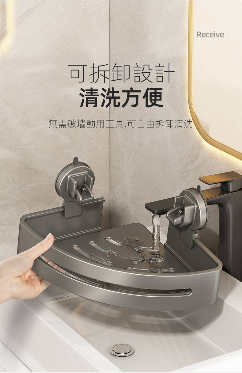 11分鐘前自帶吸盤,可隨時移動重復使用的置物架 免打孔廚房浴室衛生間三角置物架多用途壁掛收納架毛巾架 - 【超夯下殺】買一送二,共三入組 NT$999